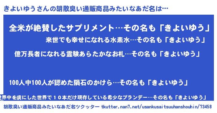 きよいゆうさんの胡散臭い通販商品みたいなあだ名をツクッター!