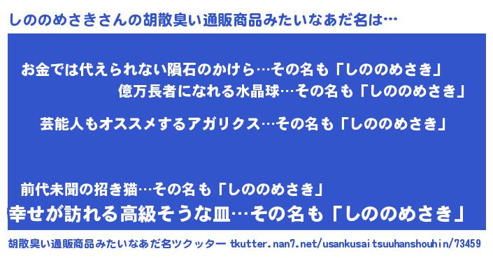 | 男性向けラノベタイトル風あだ名 | 『Re:しののめさきから始める異世界生活』 |