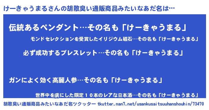 | 恥ずかしいあだ名 | 『プリティーけーきゃうまる』『けーちん』 |