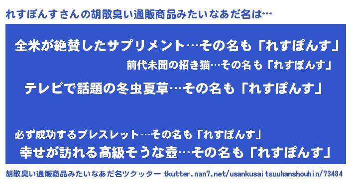 | 意味不明あだ名 | 『自称れすぽんす』『永久保存れすぽんす』 |