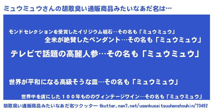 | ヘコむあだ名 | 『ミュを』『レバニラ』『ミュふぇ~』 |
