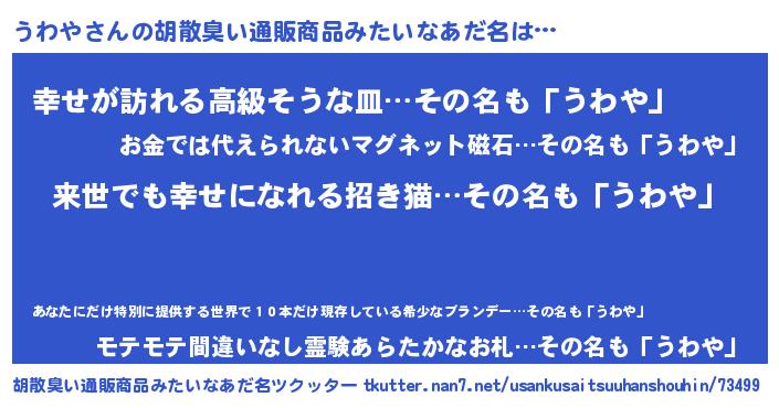 | ヘコむあだ名 | 『うわや(笑)』『つくし』『うわを』 |