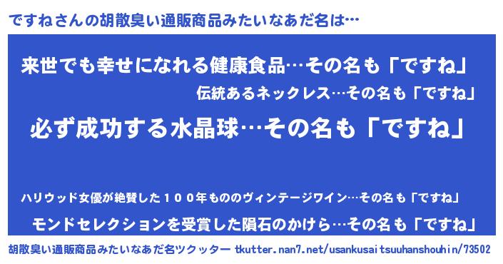 | 男性向けラノベタイトル風あだ名 | 『ですねの憂鬱』 |