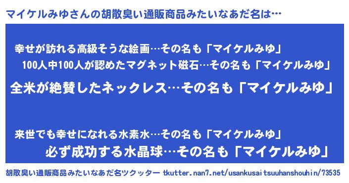 | 意味不明あだ名 | 『とにかく怪しいマイケルみゆ』 |