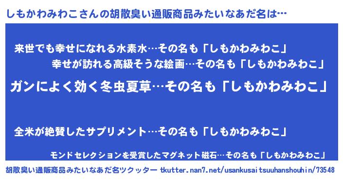 | 意味不明あだ名 | 『自称しもかわみわこ』 |