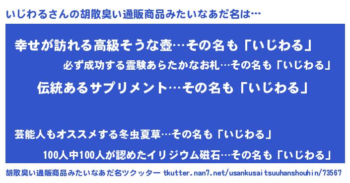 | ヒーロー風カッコイイあだ名 | 『魔戒騎士イジ』『ウルトラいじわるマン』 |