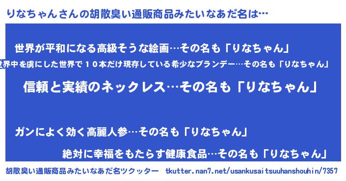 | 意味不明あだ名 | 『とにかく怪しいりなちゃん』 |