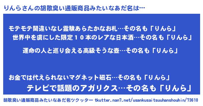 | 意味不明あだ名 | 『りんらフォーエバー』『ペロリンりんら』 |