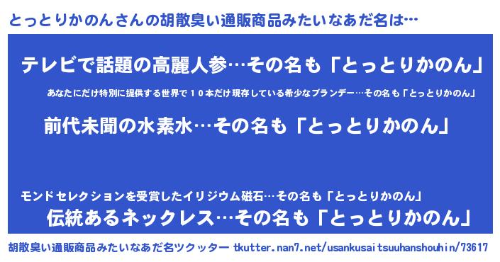 | 意味不明あだ名 | 『永久保存とっとりかのん』 |
