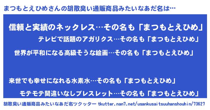| 意味不明あだ名 | 『まつもとえひめフォーエバー』 |