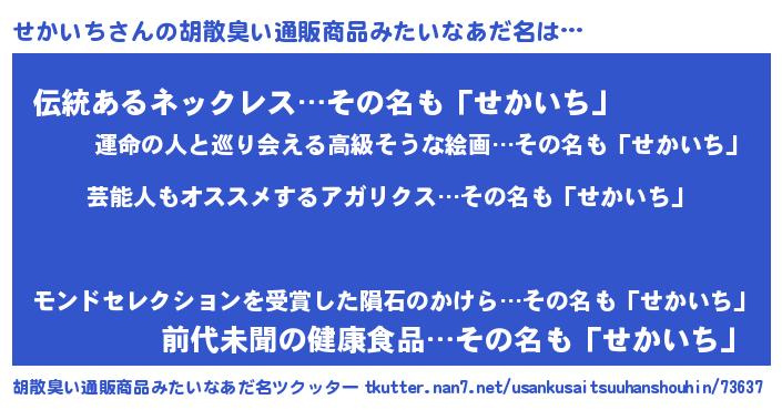 | 意味不明あだ名 | 『自称せかいち』『つくし科せかいち属』 |