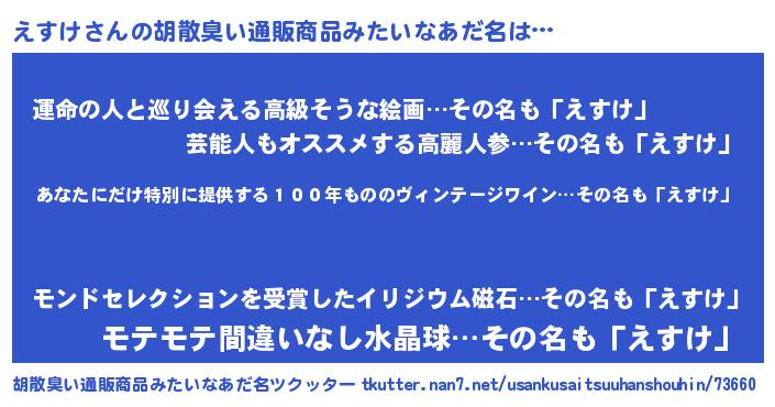 | 意味不明あだ名 | 『住所不定無職えすけ(6歳)』『自称えすけ』 |