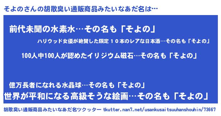 | 欧米人風あだ名 | 『アンジェラ・そよの』『ダニエルそよの』 |