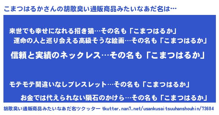 | 意味不明あだ名 | 『とにかく怪しいこまつはるか』 |