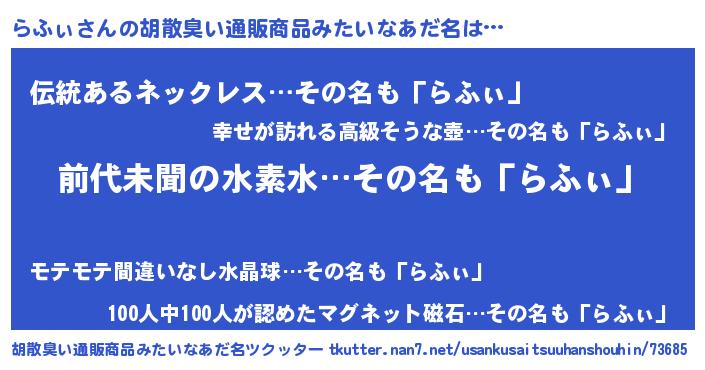 | ヘコむあだ名 | 『らふぃ(遠い目)』『らふっ子』 |