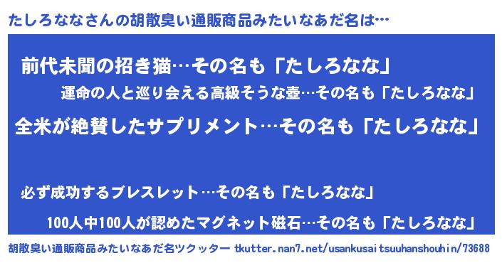 | ヘコむあだ名 | 『たしを』『たしろなな(小並感)』 |