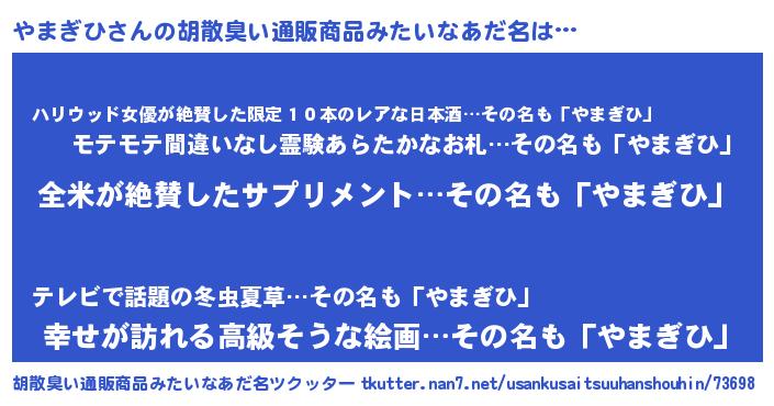 | 意味不明あだ名 | 『とにかく怪しいやまぎひ』 |