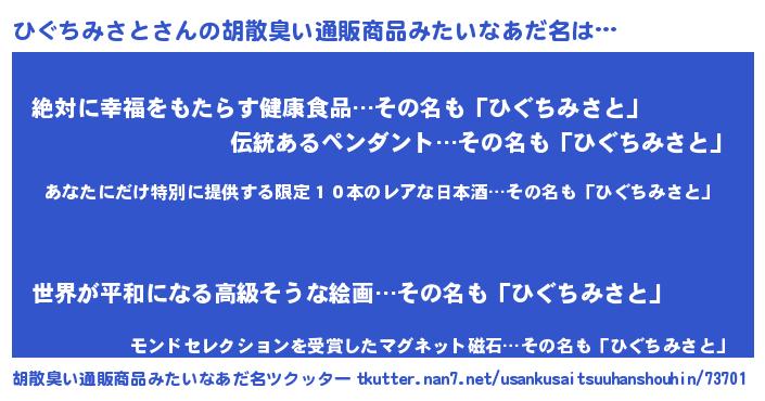 | 意味不明あだ名 | 『住所不定無職ひぐちみさと(59歳)』 |