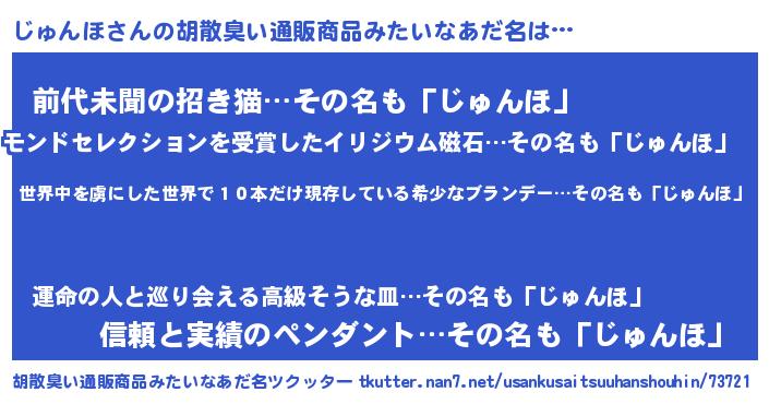 | 意味不明あだ名 | 『住所不定無職じゅんほ(85歳)』 |