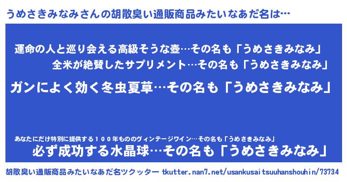| 女子向けラノベタイトル風あだ名 | 『うめさきみなみなんてお断りですっ。』 |
