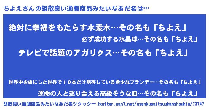 | ヒーロー風カッコイイあだ名 | 『サイバー戦士チヨエ』『ネオチヨエ』 |