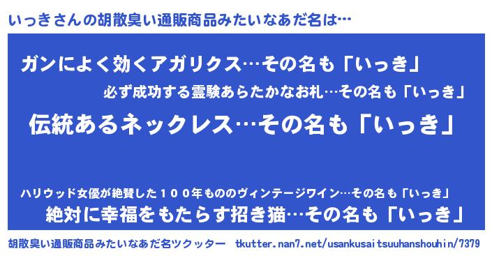 | 意味不明あだ名 | 『とにかく怪しいいっき』『自称いっき』 |