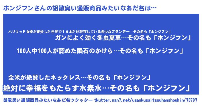 | 男性向けラノベタイトル風あだ名 | 『ホンジフンスレイヤー』 |