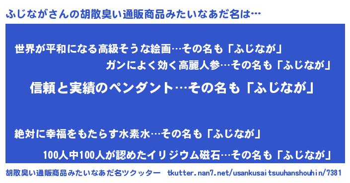 | 意味不明あだ名 | 『とにかく怪しいふじなが』 |