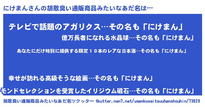 | 意味不明あだ名 | 『住所不定無職にけまん(43歳)』 |