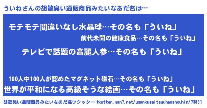 | 意味不明あだ名 | 『自称ういね』『なめこ科ういね属』 |