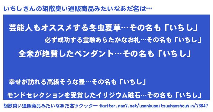 | 意味不明あだ名 | 『とにかく怪しいいちし』『自称いちし』 |