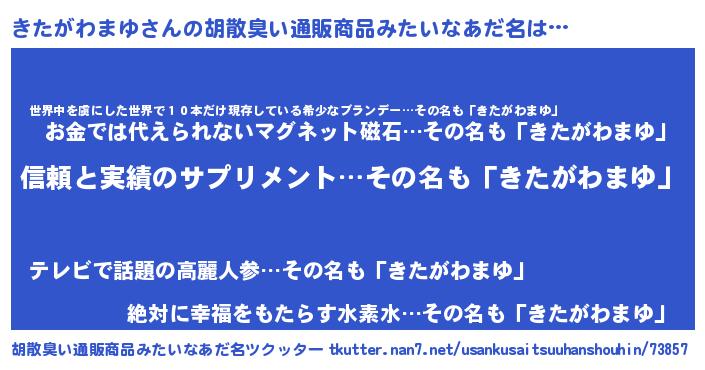 | 意味不明あだ名 | 『とにかく怪しいきたがわまゆ』 |
