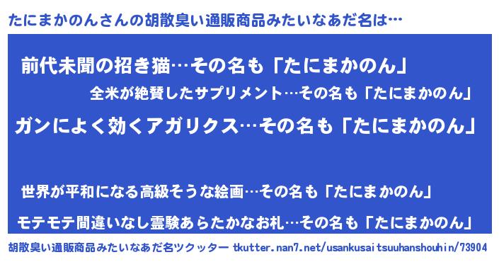 | 意味不明あだ名 | 『自称たにまかのん』 |