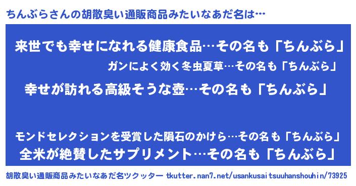 | ヒーロー風カッコイイあだ名 | 『ウルトラちんぶらマン』『ネオチンブラ』 |