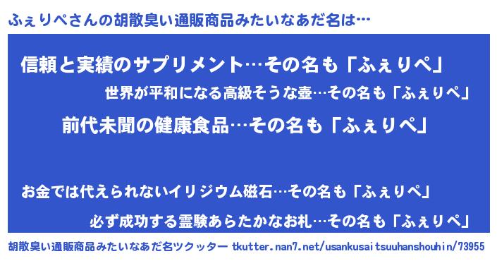 | 意味不明あだ名 | 『永久保存ふぇりぺ』『ペロリンふぇりぺ』 |