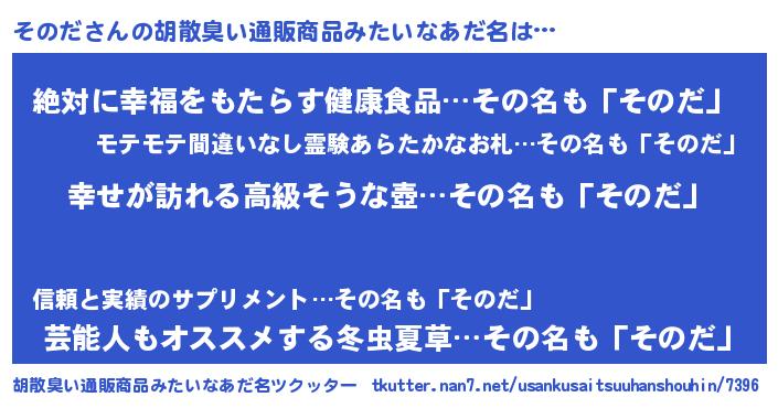 | 女子向けラノベタイトル風あだ名 | 『そのだの雑貨屋さん』 |