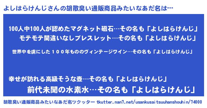 | 意味不明あだ名 | 『住所不定無職よしはらけんじ(4歳)』 |