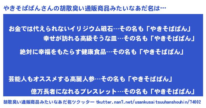 | 意味不明あだ名 | 『永久保存やきそばぱん』 |