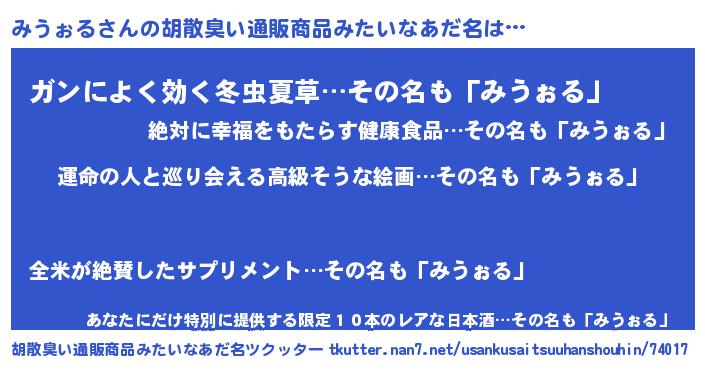 | 欧米人風あだ名 | 『みうぉるクリステル』 |