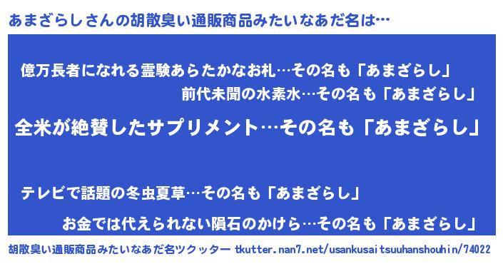 | 意味不明あだ名 | 『とにかく怪しいあまざらし』 |