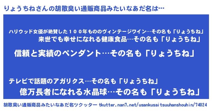 | 意味不明あだ名 | 『とにかく怪しいりょうちね』 |