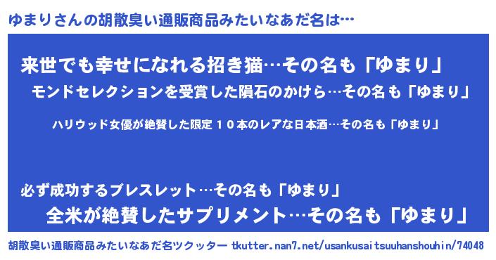 | ヘコむあだ名 | 『ゆまり(笑)』『ゆまっ子』 |