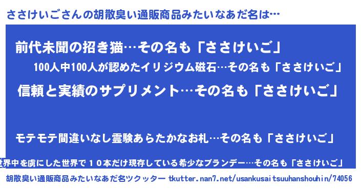 | 意味不明あだ名 | 『とにかく怪しいささけいご』 |