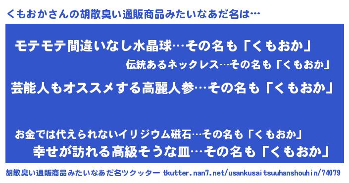 ヘコむあだ名 | 『くもふぇ~』『なまこ酢』『くもお』 |