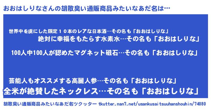 | 欧米人風あだ名 | 『ダニエルおおはしりな』 |