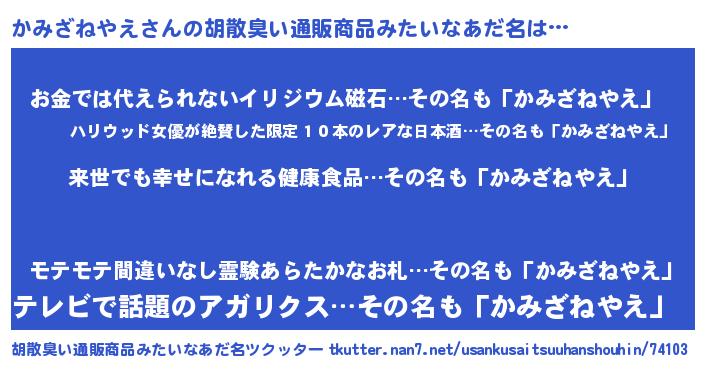 | 意味不明あだ名 | 『永久保存かみざねやえ』 |