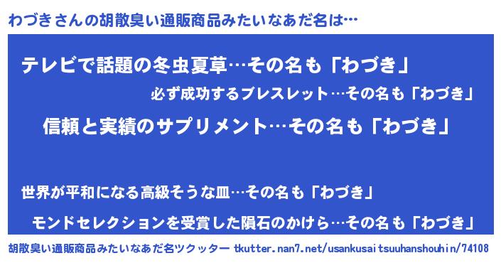 | ヘコむあだ名 | 『わづを』『わづにゅー』『牛乳』 |