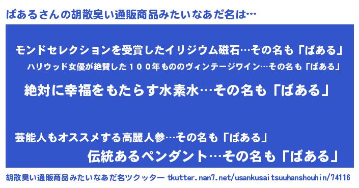 | 意味不明あだ名 | 『永久保存ばある』『自称ばある』 |