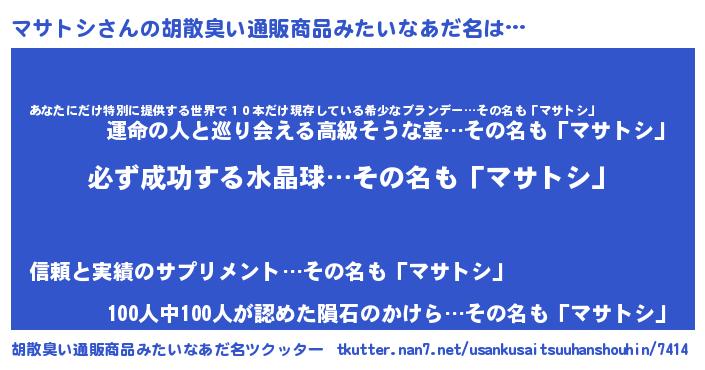 | ヘコむあだ名 | 『マサにゅー』『酢こんぶ』『マサお』 |