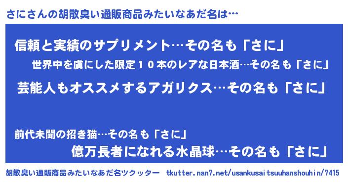 | 意味不明あだ名 | 『自称さに』『とにかく怪しいさに』 |